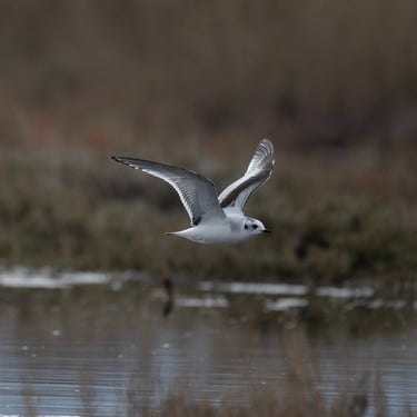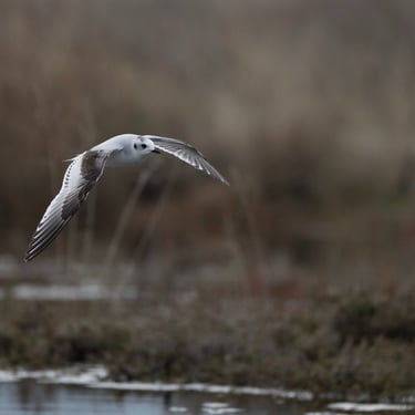4–6 Little Gulls (Hydrocoloeus minutus) actively flying low and foraging over the shallow inland pools