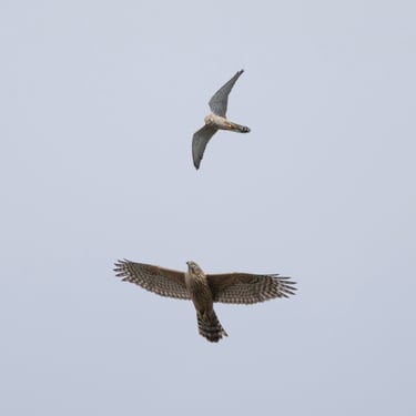 Raptors: Great Spotted Eagle, Marsh Harrier, Goshawk (chased by Common Kestrel)