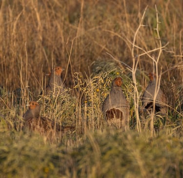 Surprise of the day: a covey of Grey Partridges